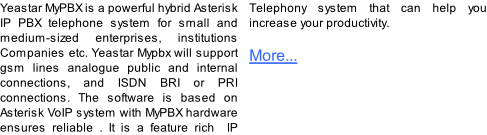 Asterisk IP Solution for enterprise and SMB Customers. Highly stable Asterisk engine provides Reliable and trouble free Performance your business required. These appliances provide VoIP with Reliability, Performance & Security.